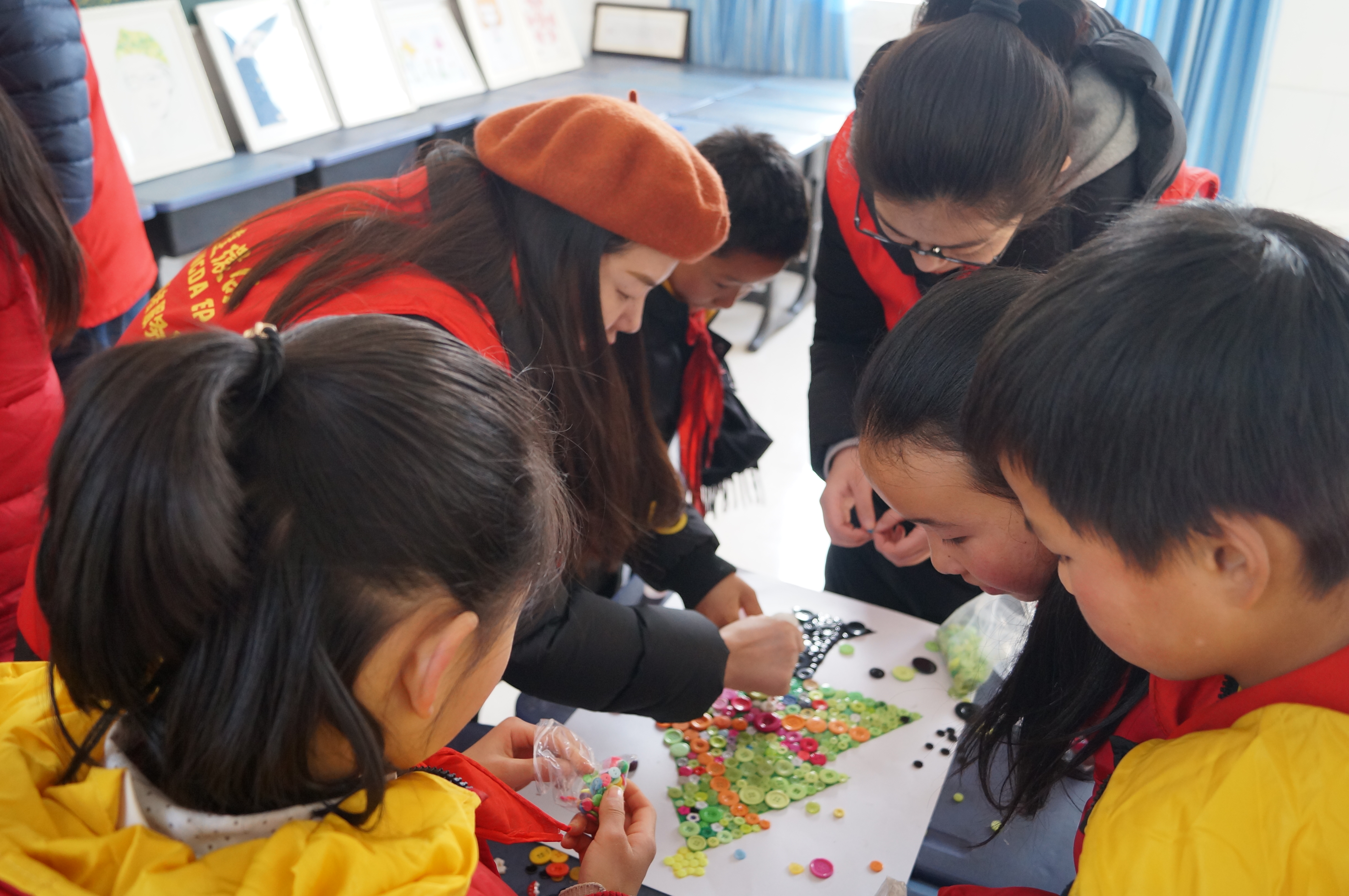 活动期间,志愿者们与孩子们展开了亲密的互动交流。有的跟着孩子们学习纽扣手工制作“绝技”,有的与孩子们载歌载舞、玩游戏,有的与孩子们畅谈未来、畅聊梦想,为孩子们解惑答疑……志愿者们看着孩子们一张张洋溢着明亮、幸福的笑脸,天气虽寒心却很暖……孩子们或依偎、或团坐在志愿者们的周围,像朋友一样亲密无间,时而与志愿者们窃窃私语,时而开怀大笑,整个校园犹如阳春三月般温暖。最后,孩子们不仅向集团领导和志愿者们敬献红领巾,还向集团公司赠送了象征着友谊的纽扣手工作品。