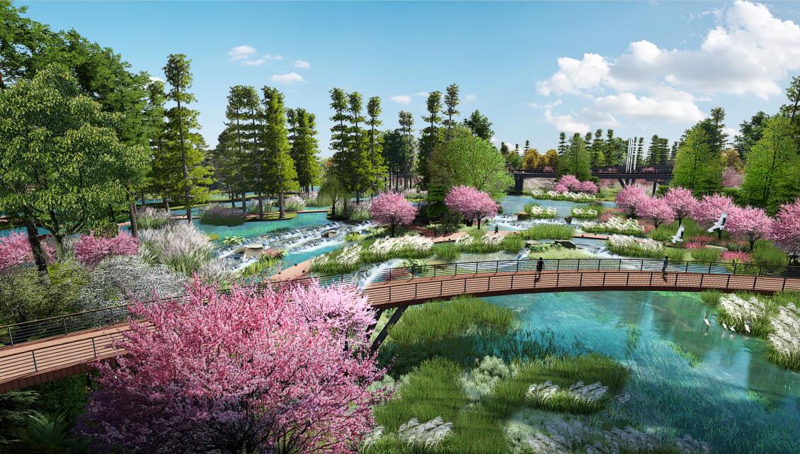 三江湿地生态修复工程位于抚州老城区西北,抚河、宜黄河、凤岗河之水交汇于此,南靠抚州主城区抚河大道、北面抚河。三江湿地生态修复工程项目总面积约为1388亩,项目总投资2.3亿元。项目包含景观工程、水利工程、市政交通及桥梁工程、水生态工程、预警系统等几大部分。景观工程以“生态门户、湿地天堂、候鸟栖地,休闲佳境,净化平台,观光胜地”为主题定位,主要分区包括湿地、树林、芦苇滩、草甸、沙滩、莲池、草坪、程家村改造、排洪河改造等。