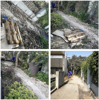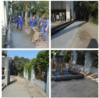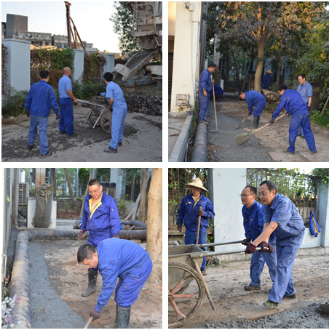 因污水处理产生的垃圾味道极其难闻,在整个活动过程中,大家始终保持“不怕脏、不怕臭、不怕累”的精神,戴着口罩,拿着扫把、铁锹、推车等工具,将洒落在垃圾屋周围的细砂、纤维物等垃圾一一清扫装车,集中至堆放处。同时,因垃圾屋周围杂草丛生,不仅滋生蚊虫,晚上还容易招来蛇鼠,不仅给垃圾清理及运输带来很大难度,员工生命财产安全也存在极大隐患。为彻底解决此类问题,在降低成本,提高经济效益的基础上,按照改造升级方案,大家人人化身“搬运工”、“水泥工”,除草、清运、浇筑、抹平......齐心协力、热情高涨......