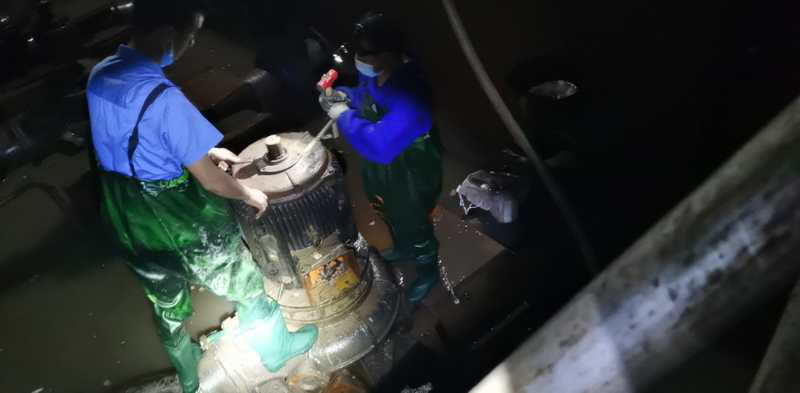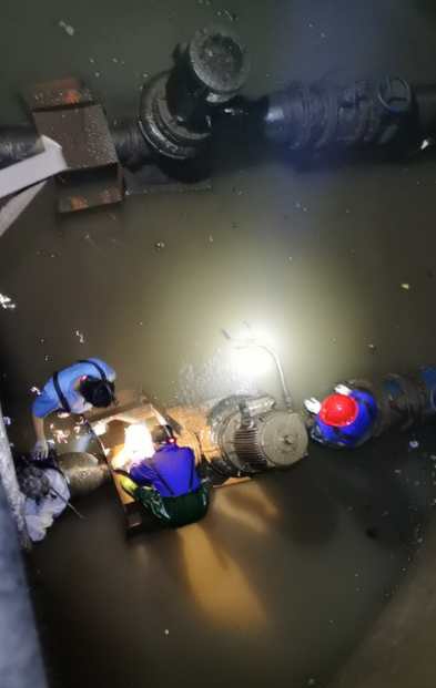 但是灾难的来临总是让人防不胜防。从2020年7月6日起,绩溪县境内普降暴雨,多处地方发生山洪,7月7日凌晨3点,扬之河河水暴涨,沿途许多村庄进水,道路、农田被淹,多处供水供电设施被冲毁。凌晨4点,绩溪厂的外部供电线路电塔被洪水冲倒,厂区随即处于停电状态,所有设备被迫停止运行,进水提升泵房随后被洪水淹没。事故发生后,绩溪厂立即启动突发重大环境事件应急预案,所有员工破除各种困难在第一时间返厂展开抢险救援工作,利用现有资源,组织人员对提升泵房积水进行抽离。8日凌晨2时,提升泵终于全部露出水面,在厂领导带领下立即组织人员对3台提升泵进行拆卸工作,并在提升泵电机全部拆卸下来后,立即送往专业的电机修理店进行清洗、烘干处理,同时安装备用电机。经过30个小时的连续奋战,第一台备用提升泵电机在8日7时完成抢修安装工作,并于17时左右恢复正常运行。为了保证水厂的正常运行,全厂男同志并没有想着休息片刻,大家立即带着满身的疲惫又投入了第二台提升泵的抢修工作中去。9日晚第二台提升泵完成了抢修安装工作,投入正常运行工作,并于9日9时,对提升泵房进行清扫工作,让泵房的环境卫生焕然一新。 绩溪厂提升泵房位于地下22米处,环境阴暗潮湿,空气污浊,但是绩溪厂的每一位干部职工不怕脏不怕累,通力协作,让水厂在最短的时间内恢复生产,把企业的损失降到最低点,顺利完成了这次抗洪抢险工作。