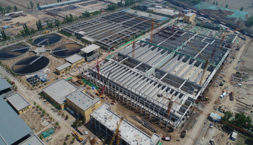 太原市汾东污水处理厂一期工程建设项目,位于太原市小店区刘家堡乡东里解村南、潇河北侧,占地面积205.65亩,地上式布置,设计规模为35万吨/日,服务范围包括汾东以东、南环过境高速以南的太原市界内区域。工程分两步建设。一期一步工程,设计规模15万吨/日,AA0+NCE+深度处理工艺,总投资约4.4亿元,2017年底开工建设,2019年1月1日通水调试,2019年4月30日建成投运。一期二步工程,设计规模20万吨/日,MBR处理工艺,总投资约6.56亿元,2020年12月开工建设,2020年5月中旬通水运行,2020年5月31日出水,出水水质已达标,目前正在准备进行初步性能测试及启动商业试运行工作。